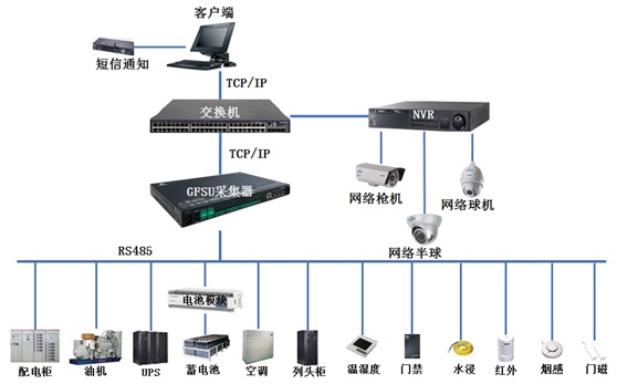 机房所监控的对象主要包括:配电系统、UPS系统、空调系统、电池组、空调周围漏水、温湿度、新风排烟状态、消防信号、视频监控等。